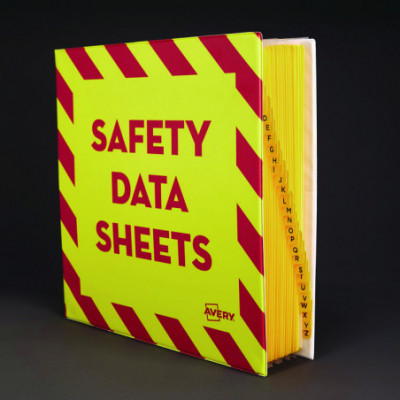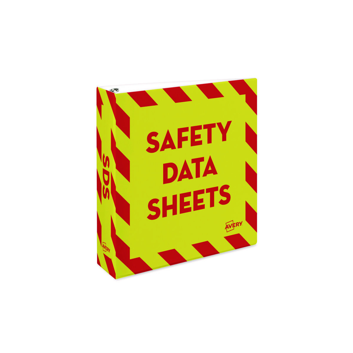 Keep safety data sheets secure and accessible. Strong, sturdy binder for extended and frequent use with thicker front and back panels. Preprinted SDS cover with white interior. One-Touch EZD® rings open and close with ease. Four interior pockets for storing loose papers. Wider front and back panels fully cover standard dividers and sheet protectors. Pages lie flat with back-mounted rings. Hold 8 1/2" x 11" documents.