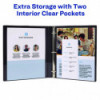 Light-use view binder. Textured clear cover hides surface damage resulting from normal use. Deep texture film offers a smoother finish and features a linen pattern for a high-quality look and feel. Pages lie flat with back mounted rings; exposed rivets on back. Two interior pockets for additional storage of loose documents. Customize cover and spine using free, easy-to-use designs and templates from Avery Design & Print.