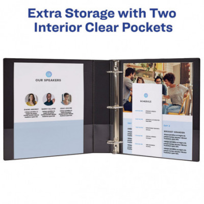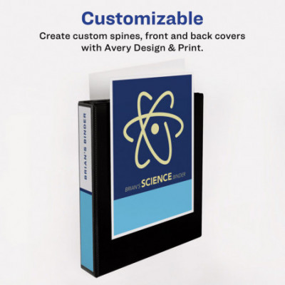Keep your binder organization simple yet secure in a slim and convenient package with Avery Showcase View Binders with slant rings. The sturdy, lightweight construction ensures that the binder is up for light, general use and is perfect for school supplies, office supplies and more. Show off your class notes, employee handbooks and other important papers in a lower cost economy binder that provides a high-quality look and feel. Covered in a deep texture film that offers a smooth finish and linen-like pattern, these binders with clear covers work well at hiding surface damage from normal, everyday use. Each binder holds 8.5" x 11" paper, sheet protectors and dividers. The back-mounted slant rings keep your pages lying flat and easy to turn. Store loose sheets within the two interior pockets on the front and back covers of the binder. Personalize your binders and make the contents easy to identify at a glance with custom title pages for your front and back covers and matching ID label on the spine. Customizing your binder is easy when you use the designs and templates in Avery Design and Print. Great for use as a report binder, project binder, portfolio binder, presentation binder, recipe binder and more.
