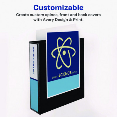 Keep your binder organization simple yet secure in a slim and convenient package with Avery Showcase View Binders with slant rings. The sturdy, lightweight construction ensures that the binder is up for light, general use and is perfect for school supplies, office supplies and more. Show off your class notes, employee handbooks and other important papers in a lower cost economy binder that provides a high-quality look and feel. Covered in a deep texture film that offers a smooth finish and linen-like pattern, these binders with clear covers work well at hiding surface damage from normal, everyday use. Each binder holds 8.5" x 11" paper, sheet protectors and dividers. The back-mounted slant rings keep your pages lying flat and easy to turn. Store loose sheets within the two interior pockets on the front and back covers of the binder. Personalize your binders and make the contents easy to identify at a glance with custom title pages for your front and back covers and matching ID label on the spine. Customizing your binder is easy when you use the designs and templates in Avery Design and Print. Great for use as a report binder, project binder, portfolio binder, presentation binder, recipe binder and more.