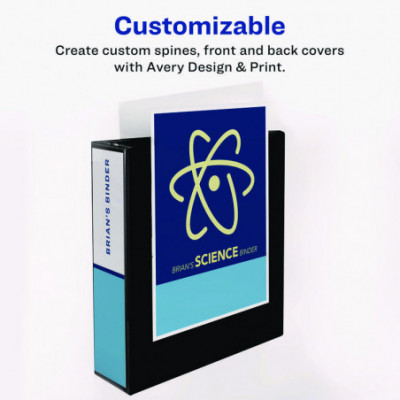 Keep your binder organization simple yet secure in a slim and convenient package with Avery Showcase View Binders with slant rings. The sturdy, lightweight construction ensures that the binder is up for light, general use and is perfect for school supplies, office supplies and more. Show off your class notes, employee handbooks and other important papers in a lower cost economy binder that provides a high-quality look and feel. Covered in a deep texture film that offers a smooth finish and linen-like pattern, these binders with clear covers work well at hiding surface damage from normal, everyday use. Each binder holds 8.5" x 11" paper, sheet protectors and dividers. The back-mounted slant rings keep your pages lying flat and easy to turn. Store loose sheets within the two interior pockets on the front and back covers of the binder. Personalize your binders and make the contents easy to identify at a glance with custom title pages for your front and back covers and matching ID label on the spine. Customizing your binder is easy when you use the designs and templates in Avery Design and Print. Great for use as a report binder, project binder, portfolio binder, presentation binder, recipe binder and more.