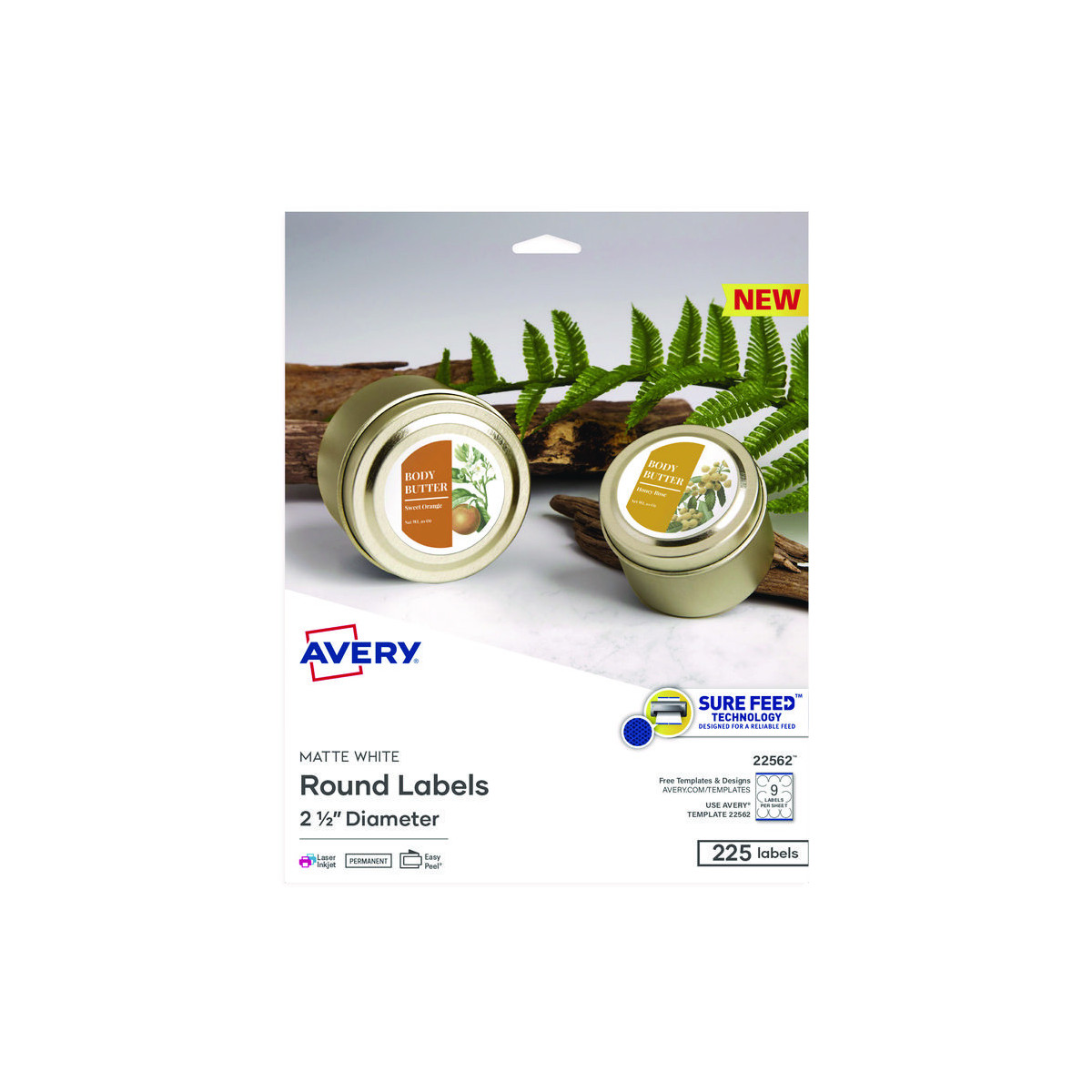 Laser/Inkjet Media Labels, Inkjet/Laser Printers, 2.5" dia, Matte White, 9 Labels/Sheet, 25 Sheets/Pack
