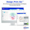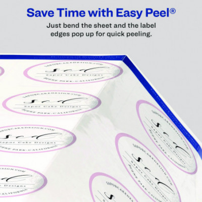 Make sure your handmade gifts and products stand out with these labels that offer the professional finishing touch you need. The print-to-the-edge capability allows you to create bright, eye-catching full-bleed labels with sharp text and crisp images printed right to the edge of the stickers with no border or margin. Sure Feed technology helps deliver a more reliable feed through your printer to prevent print misalignments and paper jams. Quick and easy to apply with the patented Easy Peel label sheets with Pop-up Edge. Simply fold the sheet back to display the label edges for convenient and fast peeling that saves time and avoids label waste. Compatible with both laser and inkjet printers to provide crisp and vivid prints. Avery Design & Print makes it easy to create customized labels fr