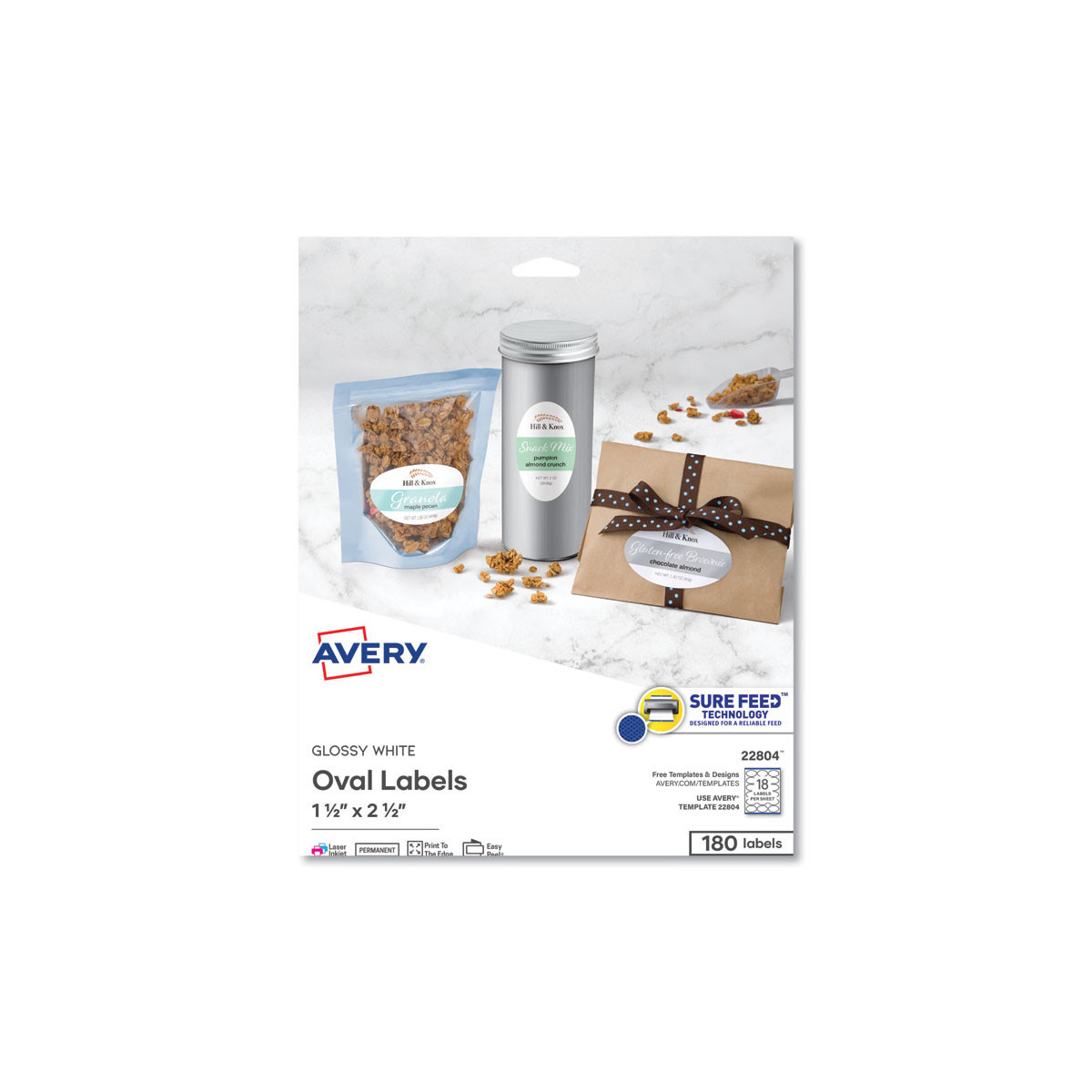 Oval Labels with Sure Feed and Easy Peel, 1.5 x 2.5, Glossy White, 180/Pack