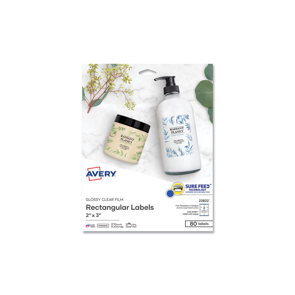 Print-to-the-Edge Labels with Sure Feed and Easy Peel, 2 x 3, Glossy Clear, 80/Pack