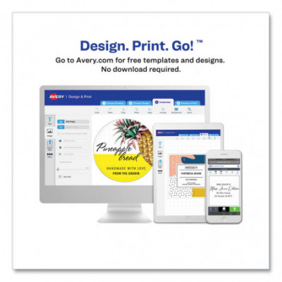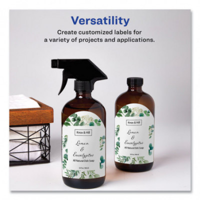 For an elegant, handcrafted look on your branded products, brochures and other business items. Labels and adhesive are water-resistant when used with laser printers -- the colors will not run when exposed to water. Ideal for labeling products that will be chilled. Permanent labels adhere well to glass bottles and jars, plastic, metal and paper. The Print-to-the-Edge feature lets you apply bright colors and sharp clear text all the way to the edge of the label to vividly showcase your logo or promotions. Easy to customize with free templates and designs from Avery® Design & Print. 8 1/2" x 11" sheets for color laser printers.