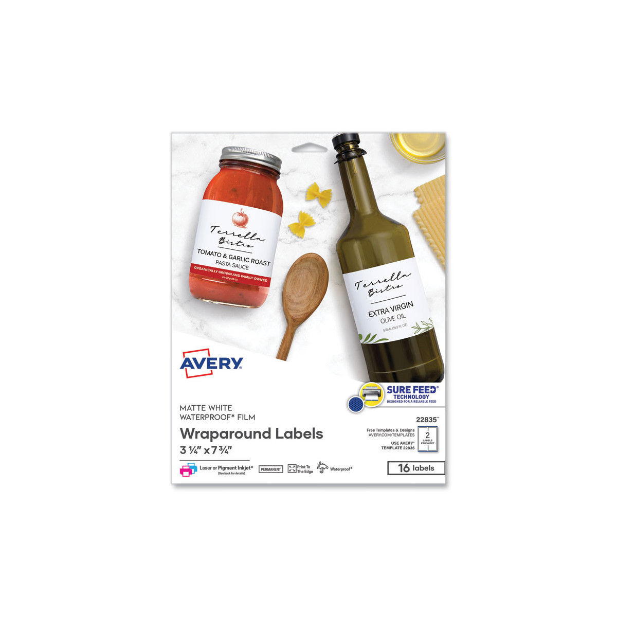 Flexible label conforms to curved surfaces. Perfect for water bottles, containers and more. Water- and scuff-resistant. Permanent adhesive sticks and stays. Labels with Sure Feed® technology are designed for a reliable feed through your printer. 8.5" x 11" sheets for laser and inkjet printers.