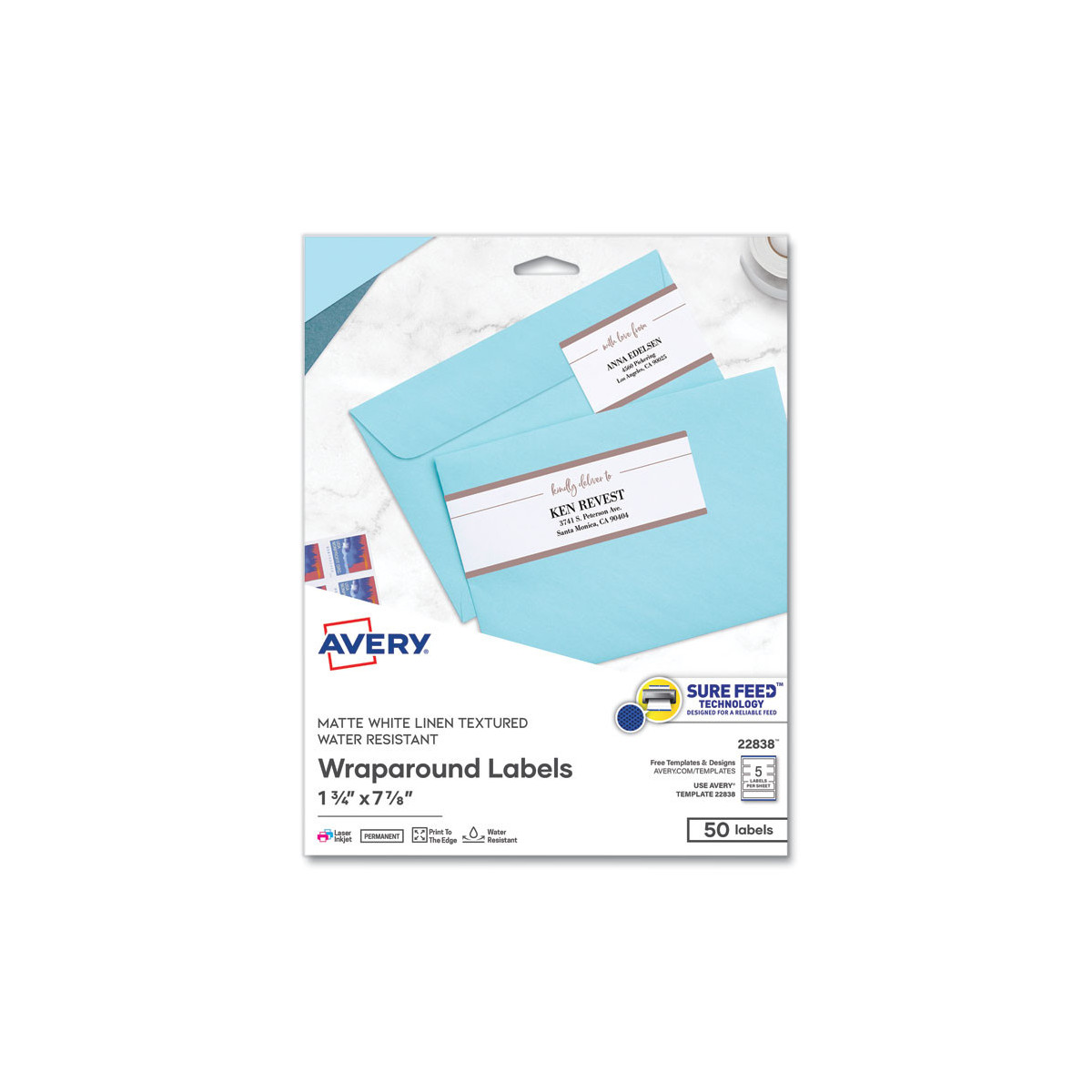 Rectangle Labels, Inkjet/Laser Printers, 7.85 x 1.75, Textured White, 5/Sheet, 10 Sheets/Pack