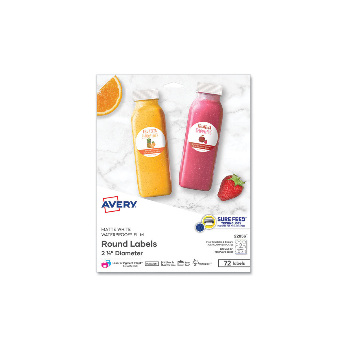 Customizable labels that will give your products a professional look. The print-to-the-edge capability lets you apply bold colors and sharp clear text all the way to the edge of the label to vividly showcase your logo or information. Sure Feed® technology is designed for a realiable feed through your printer. Easy Peel® label sheets with the Pop-up Edge® ensure a quick and easy application - simply bend the label sheet back, peel and return the sheet to a flat position. Backed with permanent adhesive, the labels stick to glass, plastic, paper and more, allowing you to put your mark on nearly any product. With free templates and designs, it's easy to add your brand to any product.
