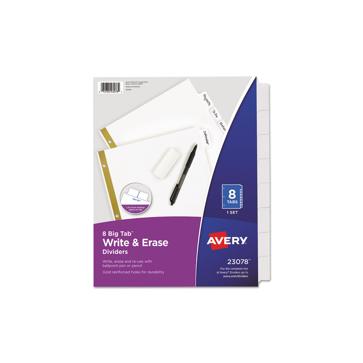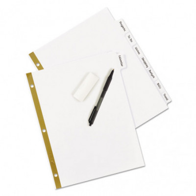 These Big Tab Write-On Dividers offer the best of both worlds. They feature tabs that are 50% larger than standard tabs, offering more room for larger fonts or extra text, plus the tabs' laminated surface lets you write, erase and reuse with ease. Use a ballpoint pen or pencil to label the tabs whenever a change is needed. Gold line reinforced binding edge for tear resistance at binder holes. It's organization made easy.
