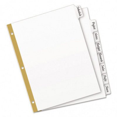 Bigger tabs provide 50% more writing space. Write on the laminated tab with virtually any instrument; to reuse, just erase and write again. Use ball point pens and pencils for best performance. Gold line reinforced binding edge for tear resistance at binder holes.
