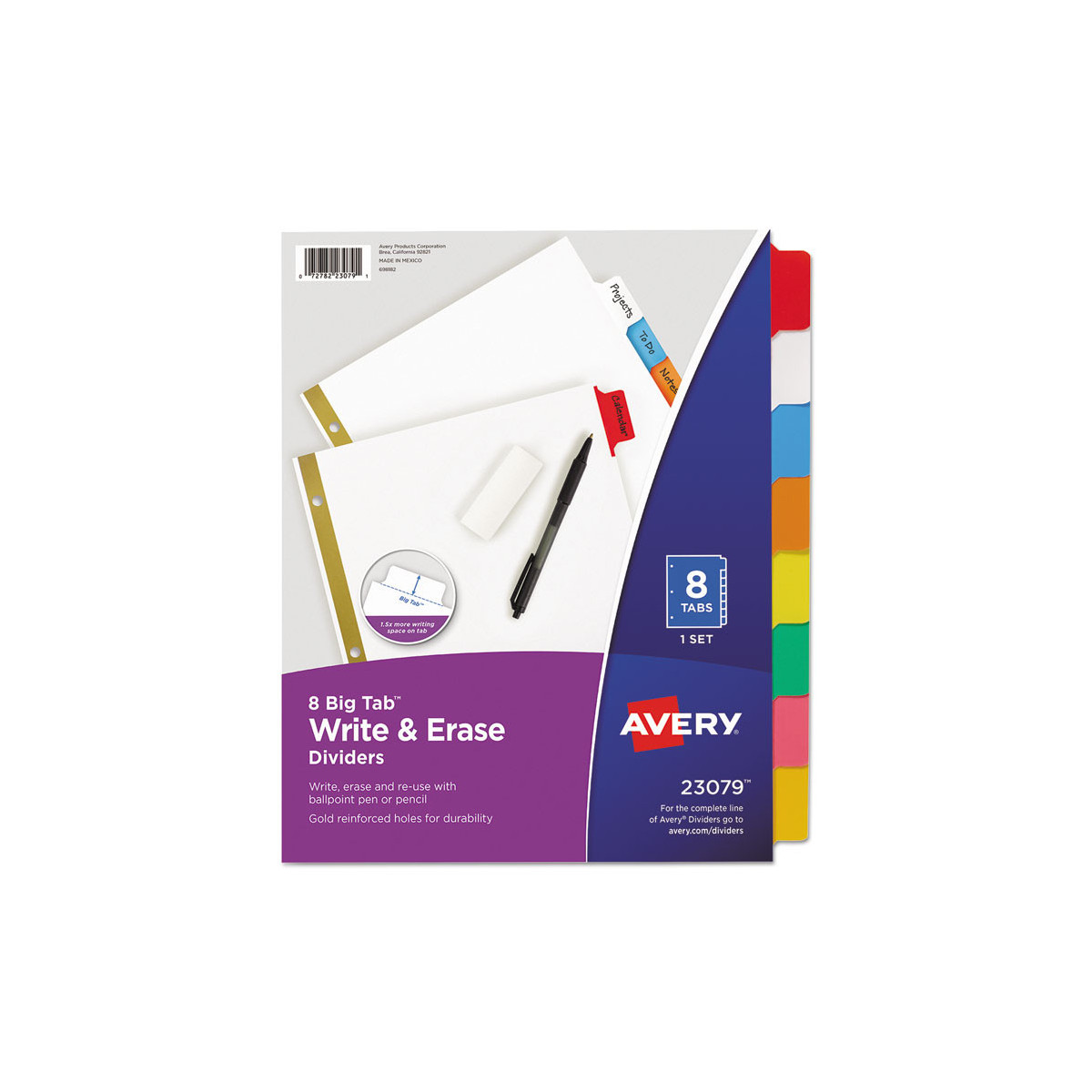 These Big Tab Write-On Dividers offer the best of both worlds. They feature tabs that are 50% larger than standard tabs, offering more room for larger fonts or extra text, plus the tabs' laminated surface lets you write, erase and reuse with ease. Use a ballpoint pen or pencil to label the tabs whenever a change is needed. Gold line reinforced binding edge for tear resistance at binder holes. It's organization made easy.