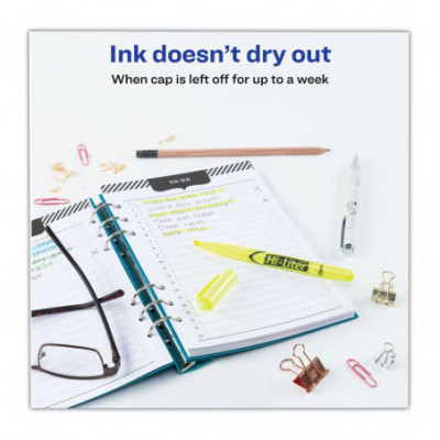 The Smear Safe® feature provides smear protection across most pen, marker and inkjet inks. Durable tip for smooth highlighting- won't fray. Use tip to highlight or underline. Sturdy clip for your pocket, organizer or binder. Cap can be left off for one week without dry-out. Quick-drying. Safe for office, school, or home.