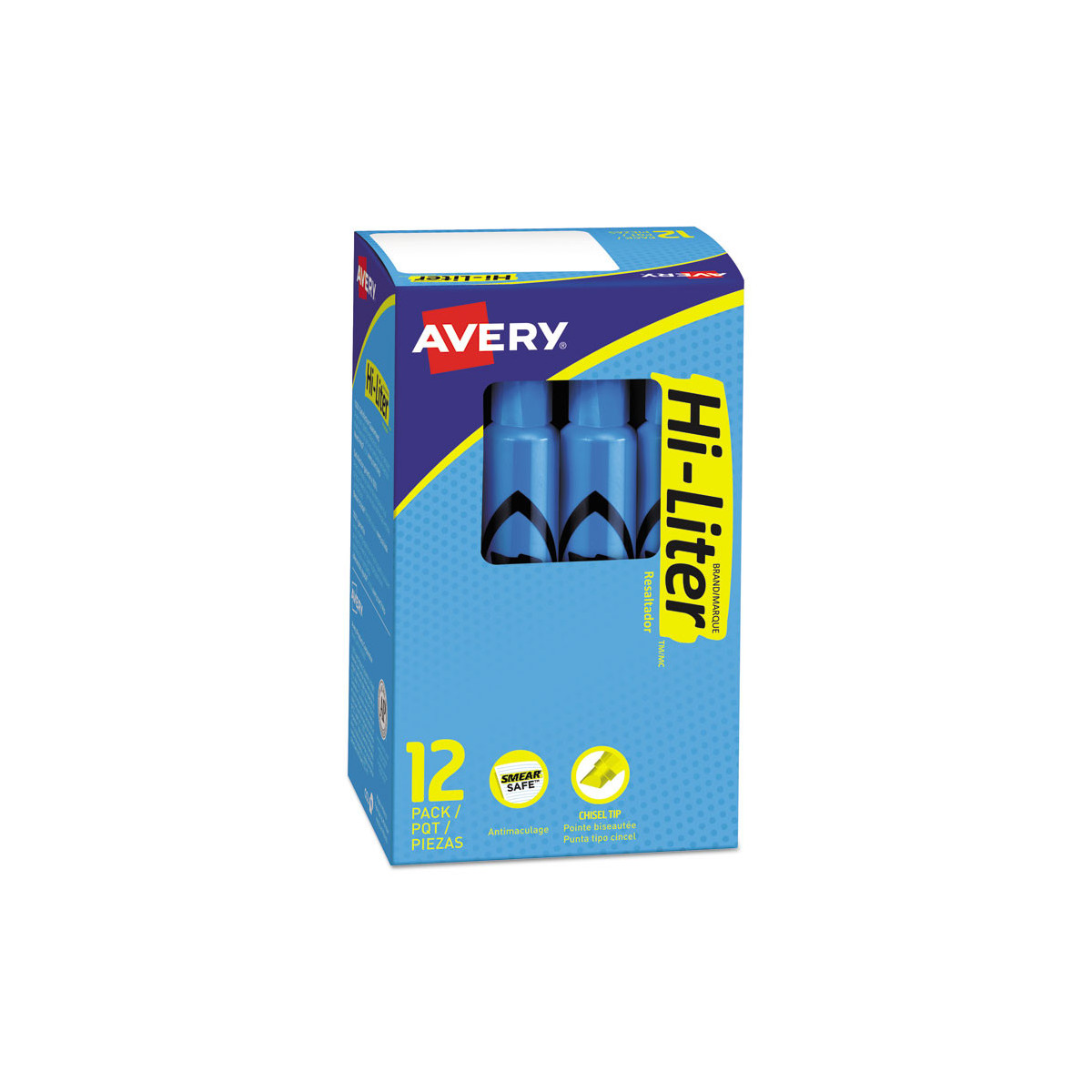 Study research materials, prepare documents or call attention to important information with Avery® HI-LITER Desk-Style Highlighters. Smear Safe, quick-drying ink provides reliable smear protection across most pen, marker and inkjet inks. Durable, fray-proof chisel tip accommodates both highlighting and underlining, while ensuring smooth performance. Nontoxic, low-odor ink is ideal for classrooms, offices and the home.