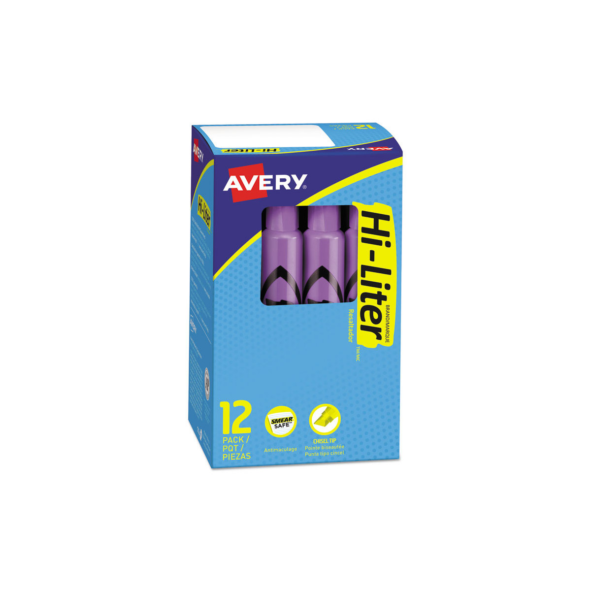 Study research materials, prepare documents or call attention to important information with Avery® HI-LITER Desk-Style Highlighters. Smear Safe, quick-drying ink provides reliable smear protection across most pen, marker and inkjet inks. Durable, fray-proof chisel tip accommodates both highlighting and underlining, while ensuring smooth performance. Nontoxic, low-odor ink is ideal for classrooms, offices and the home.
