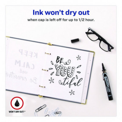 Leave your mark with these remarkable, water-, fade- and wear-resistant markers. Their ink sets into your chosen media quickly but won't dry out, even if you leave the cap off for up to 30 min. And as these large markers hold over 30% more ink than comparably sized alternatives, long-lasting performance is guaranteed. Durable tip eliminates the potential for fraying and is designed to leave clean, bold text. Ideal for almost every conceivable surface: paper, cardboard, metal, PVC, concrete, plastic, ceramics and more, they're an excellent choice for just about any scenario, from marking construction materials to labeling sports equipment to creating yard sale signs. Handy pocket clip makes it easy to carry a MARKS A LOT® marker wherever you go, whether you're off to the classroom, office, jobsite, factory floor or simply heading home. Low-odor and non-toxic.