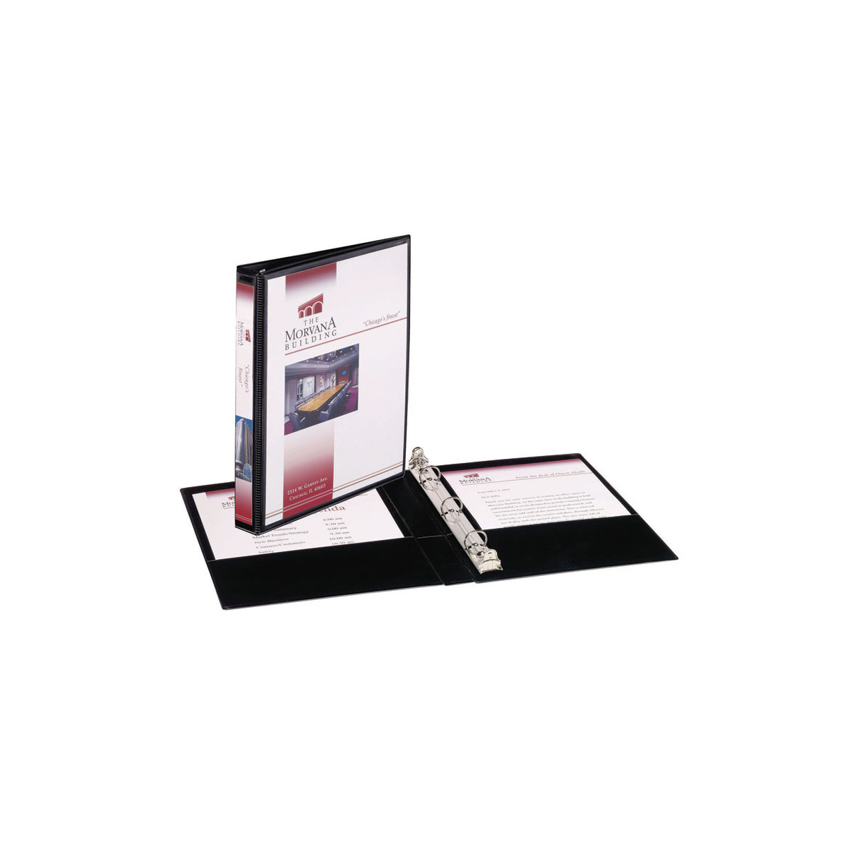 Great for your smaller 8 1/2 x 5 1/2 pages. Durable construction is ideal for frequent referencing. Organize and secure paper with two interior pockets. Easy to customize your binder with free templates and designs at Avery® Design & Print Online. Pages lie flat with back-mounted round rings.
