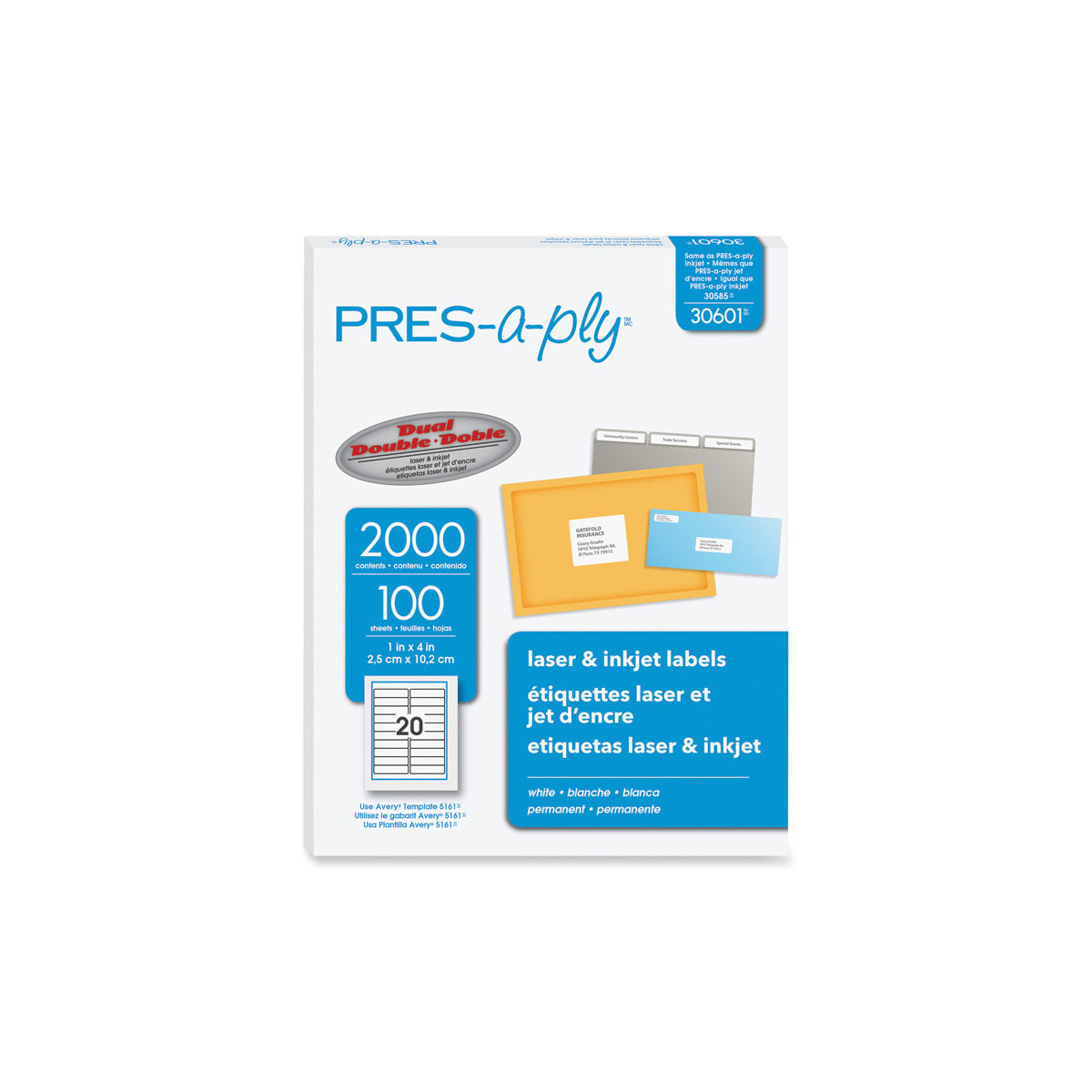 Economical PRES-a-ply® labels can be used for almost every addressing and identification need. Great for high-volume, low-cost printing. 8 1/2" x 11" sheets.
