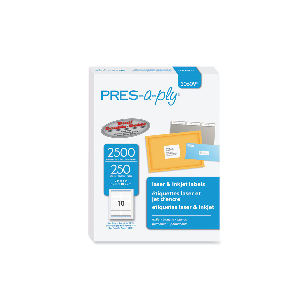 Economical PRES-a-ply® labels can be used for almost every addressing and identification need. Great for high-volume, low-cost printing. 8 1/2" x 11" sheets.
