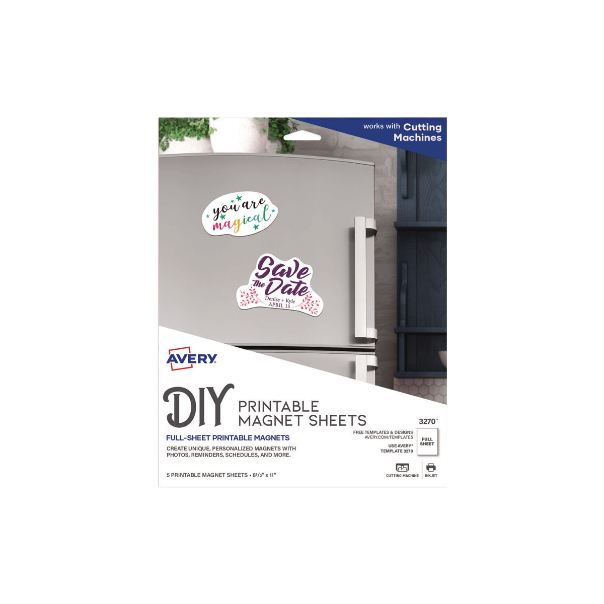 Post important phone numbers, to do lists or photos right on refrigerators, lockers, file cabinets and more. Magnetic backing is strong enough to hold paper and photos on most metal surfaces. Face stock features a matte coating to ensure rich color and vibrant photo reproduction. Keep one big magnet on the fridge or cut several smaller designs into different shapes and sizes to give as gifts. Easy to customize with complimentary designs and templates from Avery® Design & Print. For inkjet printers.
