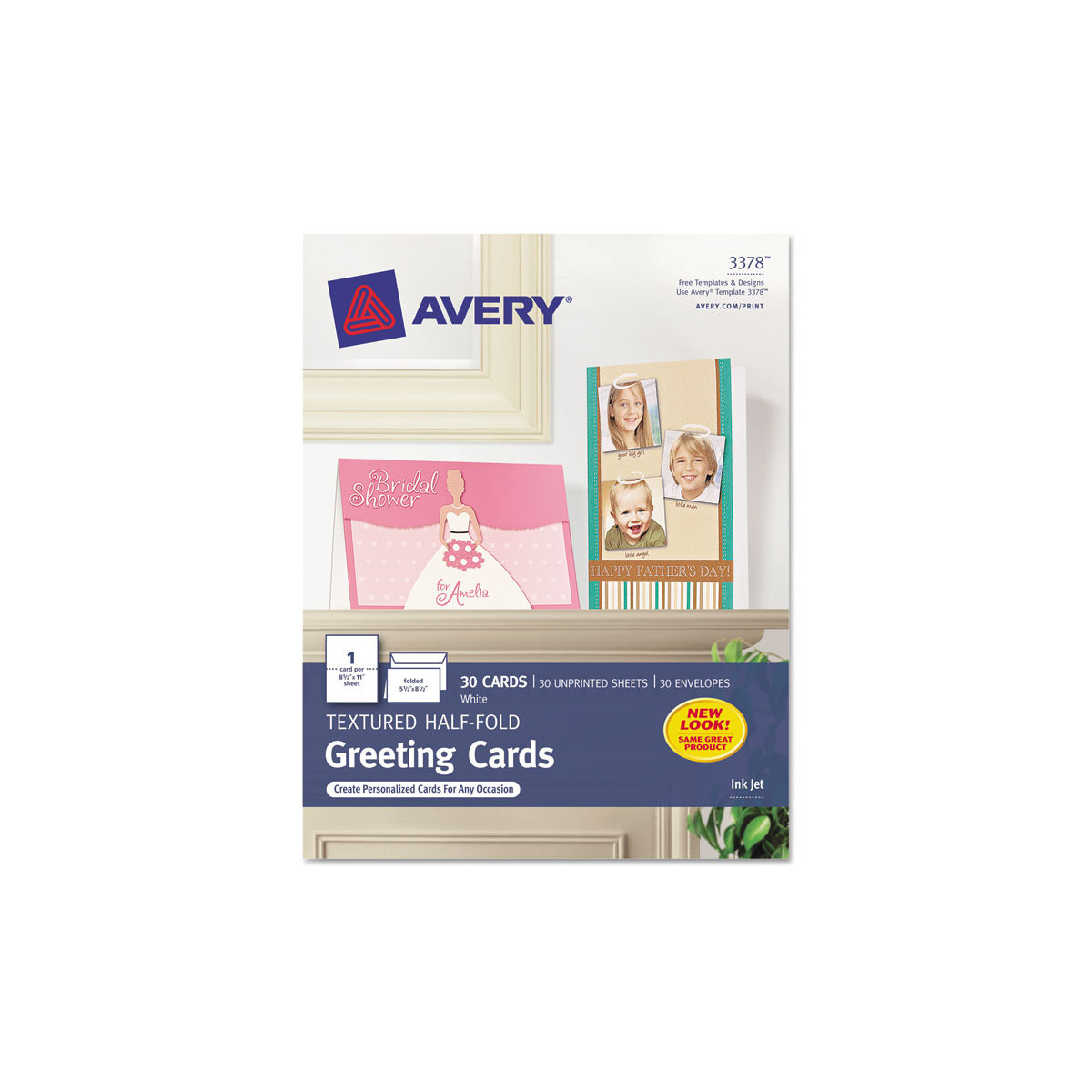 So you're fond of receiving invitations or season's greetings in the mail? Return the favor with a message of your own with these printable Greeting Cards. To get started, check out the wide selection of free designs and templates on Avery Design & Print or use your favorite digital photos for a personal touch. Design in portrait or landscape orientation and feed heavyweight card stock through your printer and watch as the high-resolution color makes images come to life. Cards are scored for easy folding and come with matching envelopes. Few things say "thinking of you" quite like a custom-made card. 8.5" x 11" sheets for inkjet printers.