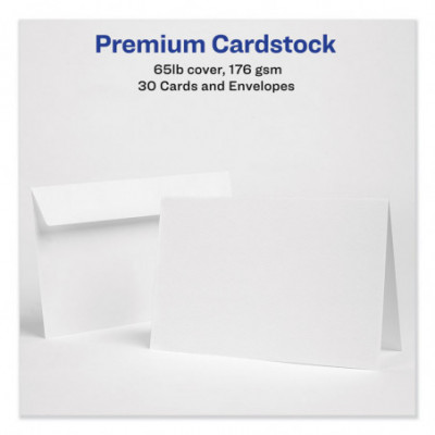 Now you can create store-bought quality cards. Ideal for party invitations, birthday cards, holiday cards, anniversary and wedding announcements, graduation and more. The high quality heavyweight card stock and special two-sided coating are designed to maximize the brilliant color. Microperfs and premium scoring allow for easy folding. Design in portrait or landscape orientation. Easy to customize with free designs and templates from Avery Design & Print. 8.5" x 11" sheets for inkjet printers.