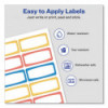 Help kids identify their belongings with the Avery durable labels. Water- and tear-resistant labels are perfect for daycare, school, camping gear, lunchbox items, bottles, sporting goods, and electronic devices. Simply write on with a permanent marker for quick and easy labelling of all your kid's items and keep them out of lost and found. White labels with assorted border colors and permanent adhesive backing. The TrueBlock technology allows you to completely cover up whatever is underneath the label.