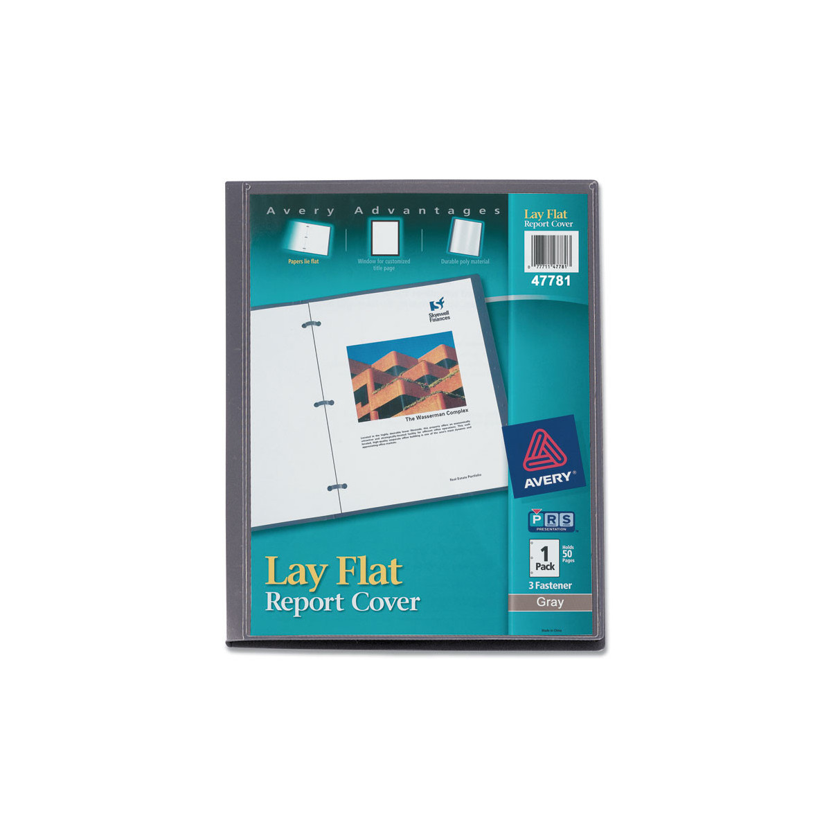 Create an easy-to-read presentation with Avery Lay Flat Report Cover. For easy viewing, each report cover features three sturdy, yet flexible plastic loops designed to hold the pages flat when open. Create a memorable first-impression as the report cover features a view window designed to hold your customizable title page. Whether your documents are for school, home, or work, use the predesigned binder templates and designs at avery.com to create a report cover page. Use the versatile report cover folders to create a school book report, a financial planner, a business proposal folder, and more. The reusable plastic report cover allows you to remove the old pages and replace them with new sheets. Keep your report clean and presentable as the non-stick, poly material won't lift or transfer any print from your documents. The report cover with fasteners can hold up to 50 sheets of 8.5" x 11" paper.