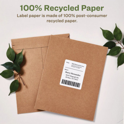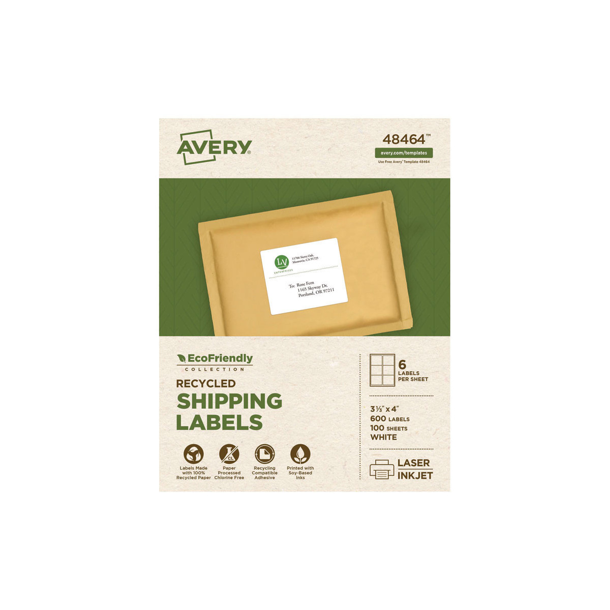 A natural choice for doing right by the environment. EcoFriendly mailing labels are made of 100% recycled material, processed Chlorine Free and printed using soy based ink. Easy to customize with free templates from Avery® Design & Print. 8.5 x 11 sheets for laser and inkjet printers.