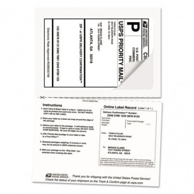 Don't wait in line at the post office when you can go online and get your packages ready to ship with our shipping labels with paper receipts. These labels work with most popular shipping software and services such as UPS®, FedEx®, Stamps.com® Online Postage and both USPS® Click-N-Ship® and Shipping Assistant®. Efficient design combines the shipping label and paper receipt onto one sheet, so you'll never have to waste another label to print the receipt. Powerful TrueBlock® Technology is guaranteed to completely cover up everything underneath so you can reuse boxes, large envelopes and mailing tubes. Easy to customize with free templates from Avery® Design & Print. Shipping has never been easier.