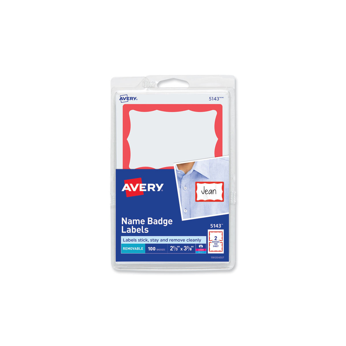 Printable Adhesive Name Badges, 3.38 x 2.33, Red Border, 100/Pack