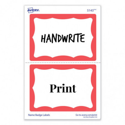 Choose from a variety of badge styles: "Hello", plain or border-style. These versatile name badge labels let you add graphics, handwrite names or both. Easy-to-use Avery® Design & Print templates help you create professional-looking badges for identifying everyone at meetings and conferences. You can add a company logo at the top or a specialized greeting. Handwrite or print 4" x 6" with a laser or inkjet printer. How these name badge labels look is up to you.