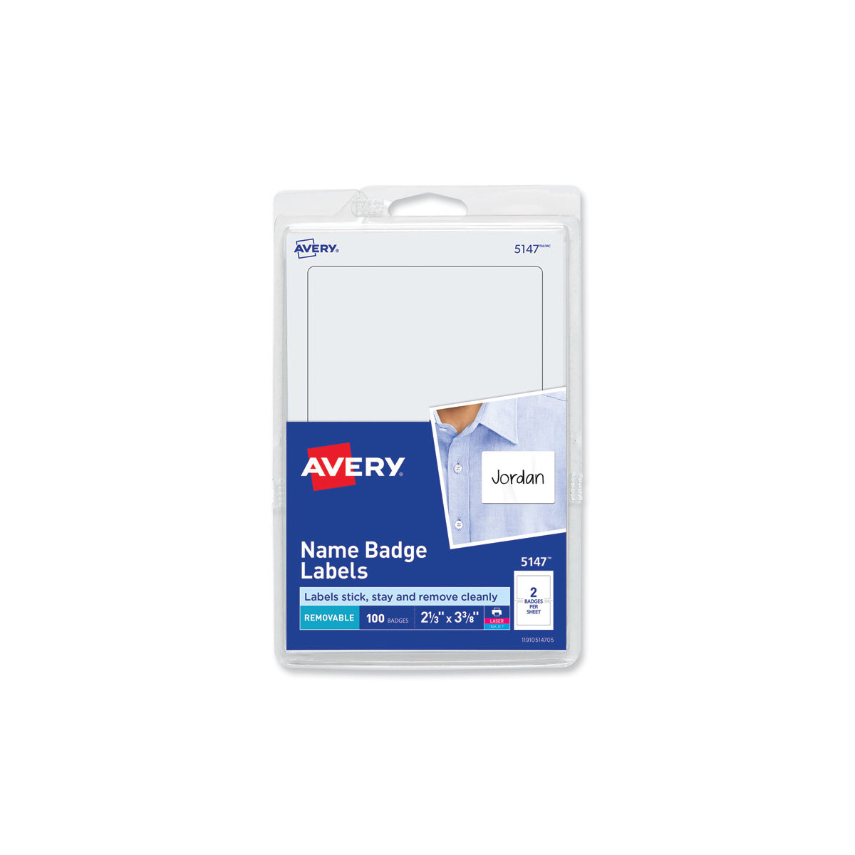 Choose from a variety of badge styles: "Hello", plain or border-style. Self-adhesive badges adhere firmly and remove easily. Removable adhesive is safe for most fabrics. Easy to customize with free templates from Avery® Design & Print. Handwrite or print 4" x 6" with a laser or inkjet printer.