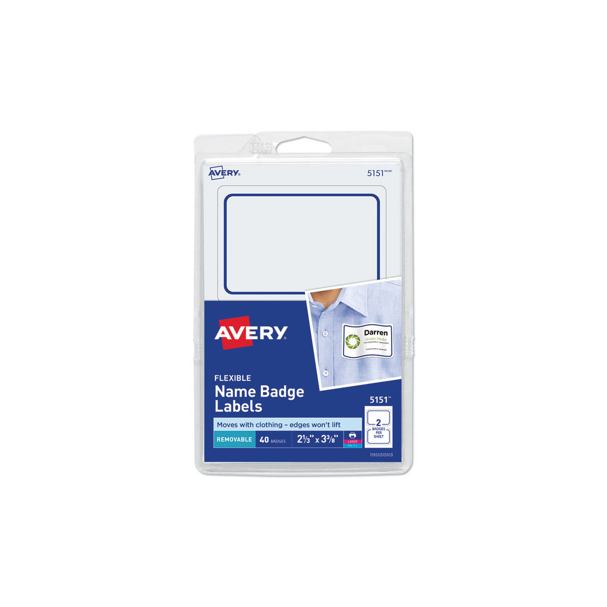 Flexible badges move with fabric, ensuring that they stick securely without curling or falling off. Peel-away design allows for quick and easy separation. Handwrite or customize with free templates and designs using Avery Design & Print. 8.5" x 11" sheets for laser and inkjet printers.