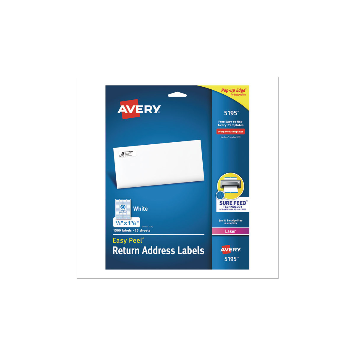 Easy Peel White Address Labels w/ Sure Feed Technology, Laser Printers, 0.66 x 1.75, White, 60/Sheet, 25 Sheets/Pack