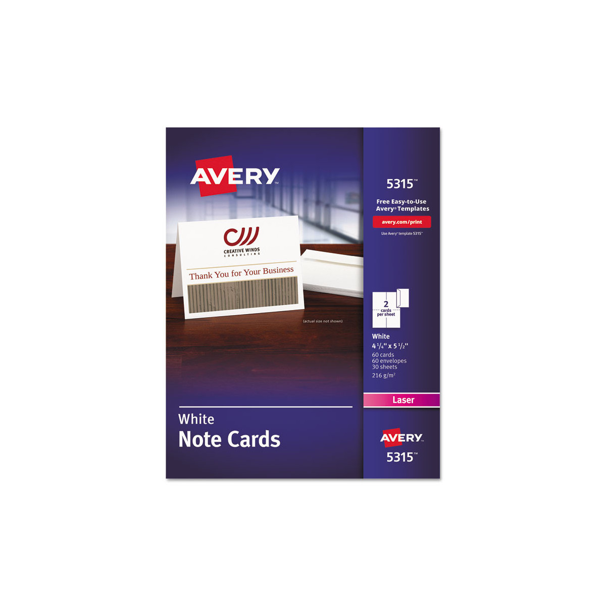 Note Cards with Matching Envelopes, Laser, 80 lb, 4.25 x 5.5, Uncoated White, 60 Cards, 2 Cards/Sheet, 30 Sheets/Pack