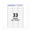 Copier Mailing Labels, Copiers, 1 x 2.81, White, 33/Sheet, 250 Sheets/Box
