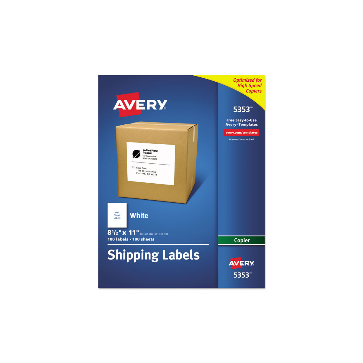 Create a master sheet once and produce as many labels as needed quickly and easily using your copier. Bright white or clear labels are perfect for creating labels for addressing, shipping, bar coding and organizing. Easy to customize with free templates from Avery® Design & Print. 8 1/2" x 11" sheets.