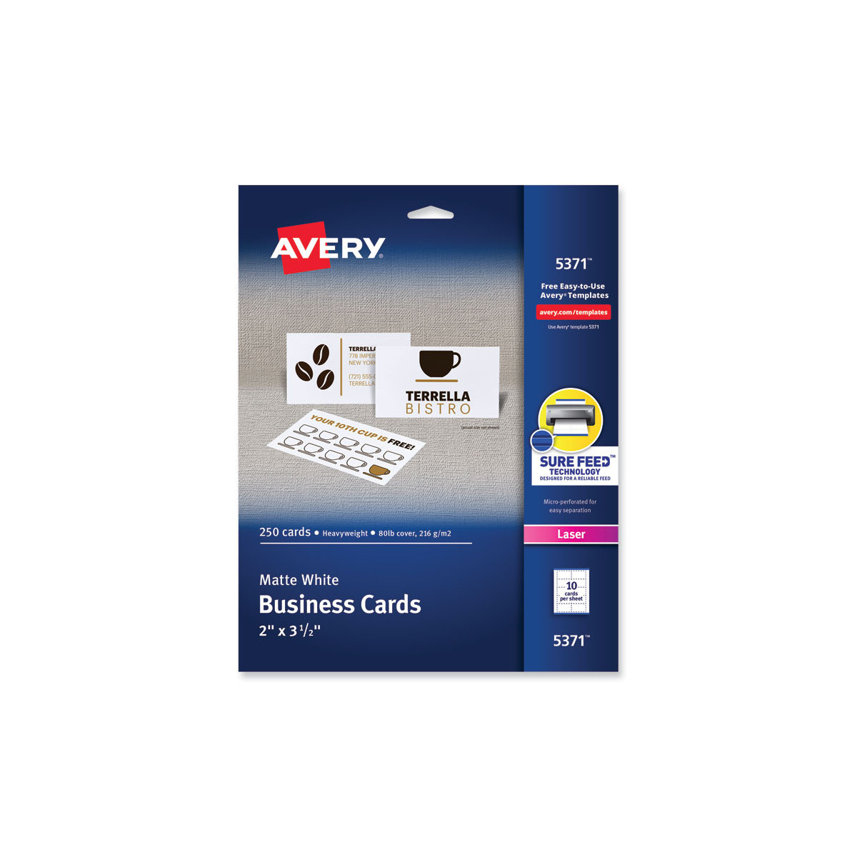 Design and print business cards, appointment cards and more. Card sheets with Sure Feed® technology are designed to prevent jams and misalignments. Sturdy cardstock with ultra-fine perforations is printable on both sides. Easy to customize with free designs and templates from Avery Design & Print. 8.5" x 11" sheets for laser and inkjet printers.