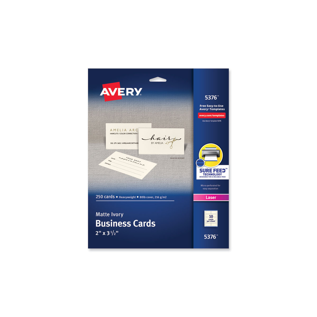 Design and print business cards, appointment cards and more. Card sheets with Sure Feed® technology are designed to prevent jams and misalignments. Sturdy cardstock with ultra-fine perforations is printable on both sides. Easy to customize with free designs and templates from Avery Design & Print. 8.5" x 11" sheets for laser and inkjet printers.