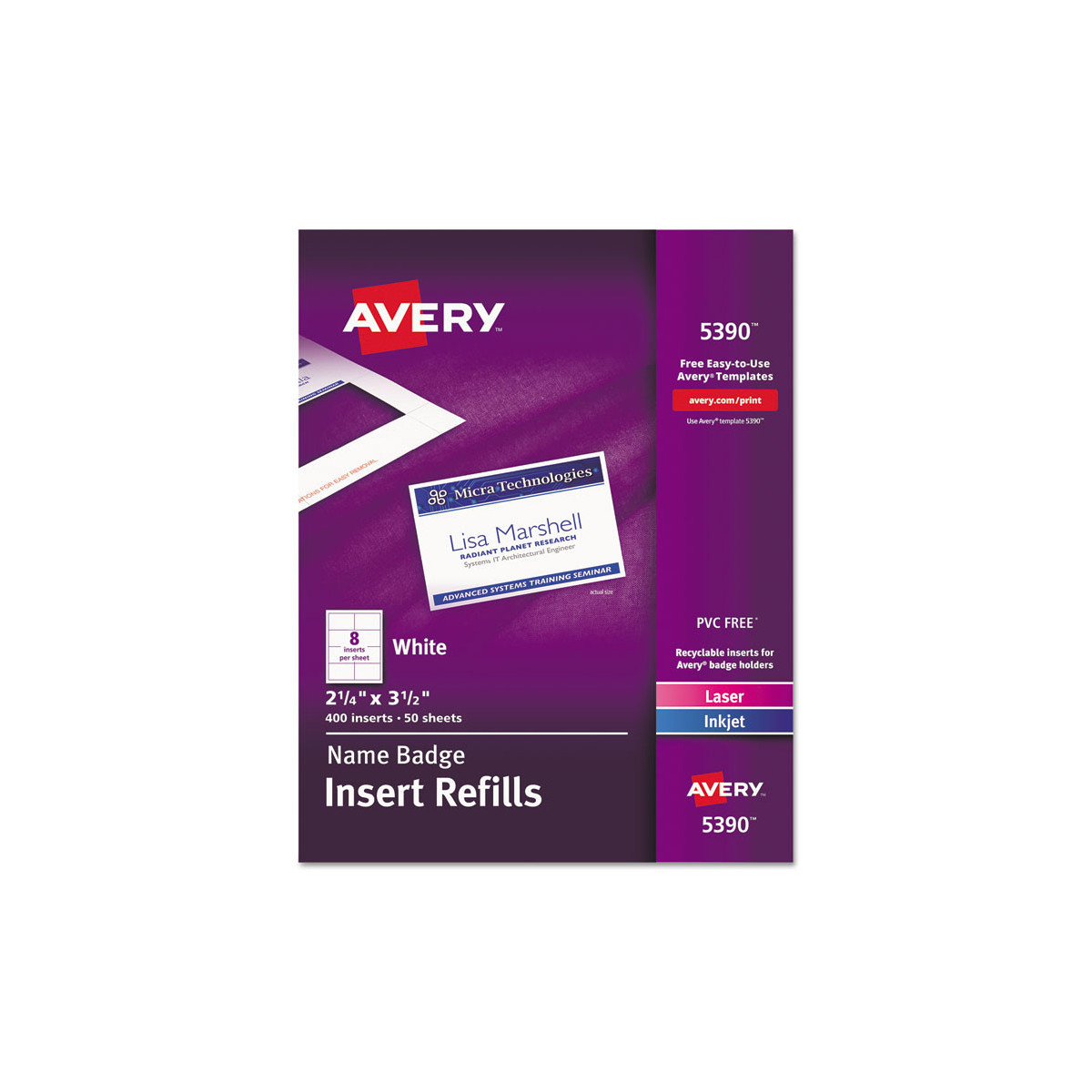 Micro-perforated inserts separate cleanly leaving smooth edges. Inserts work with badge holders (available separately). 8.5" x 11" sheets for laser and inkjet printers.