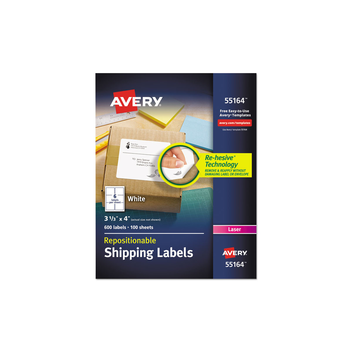 Repositionable Shipping Labels w/SureFeed, Laser, 3.33 x 4, White, 600/Box