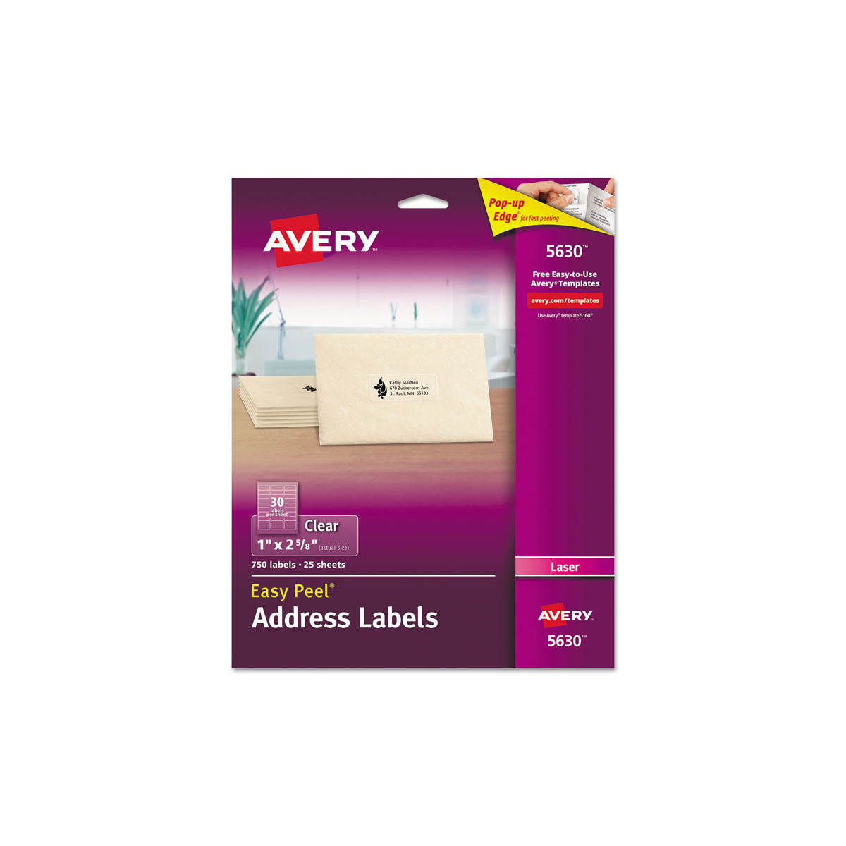 Matte Clear Easy Peel Mailing Labels w/ Sure Feed Technology, Laser Printers, 1 x 2.63, Clear, 30/Sheet, 25 Sheets/Box