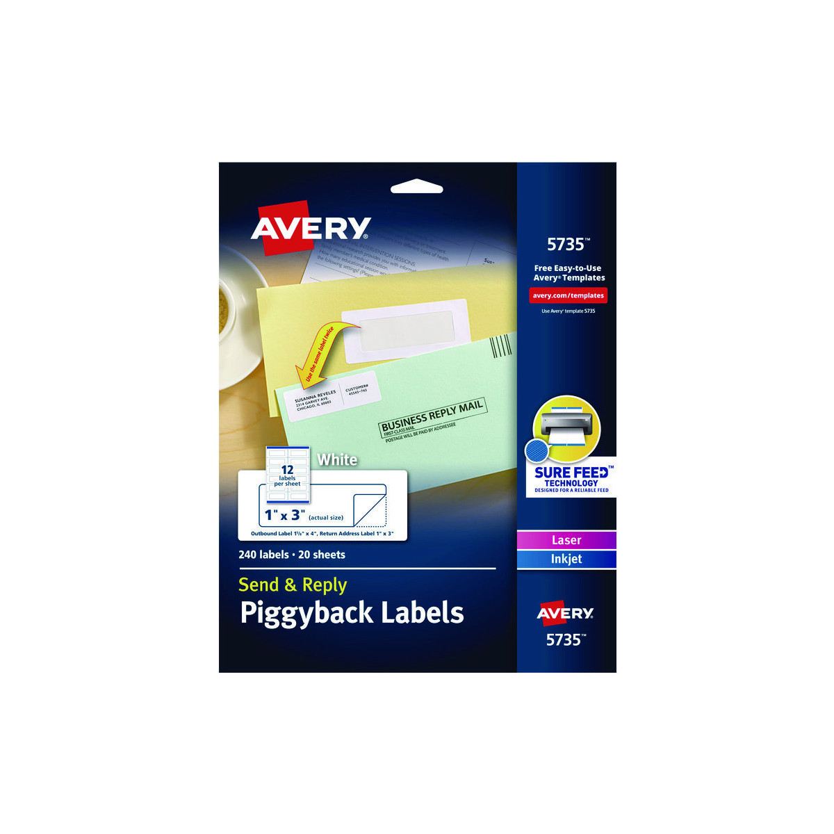 Make it easy for recipients to respond to you, on the double. These send and reply piggyback labels can be used as an address label, then peeled off and used as a return address label. Returning packages, replying to invitations and responding to questionnaires has never been more convenient. And with free templates and designs from Avery® Design & Print, designing your labels is a breeze. Just print and apply these double-duty labels to your next mailing. Outer dimension of label: 1 5/8" x 4", inner dimension of label: 1" x 3".