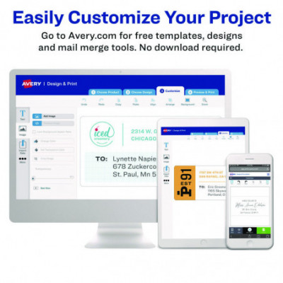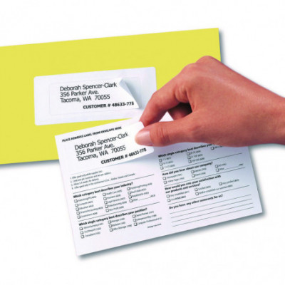 The same label serves as an outbound address label and a return address label for responder. The outbound address label can easily be peeled off and re-used as a return address label, making it quick and easy for customers to respond to you, while ensuring the accuracy of your customer's information. Outer dimension of label: 1 5/8" x 4", inner dimension of label: 1" x 3". Easy to customize with free templates and designs using Avery® Design & Print. 8 1/2" x 11" sheets for laser and inkjet printers.