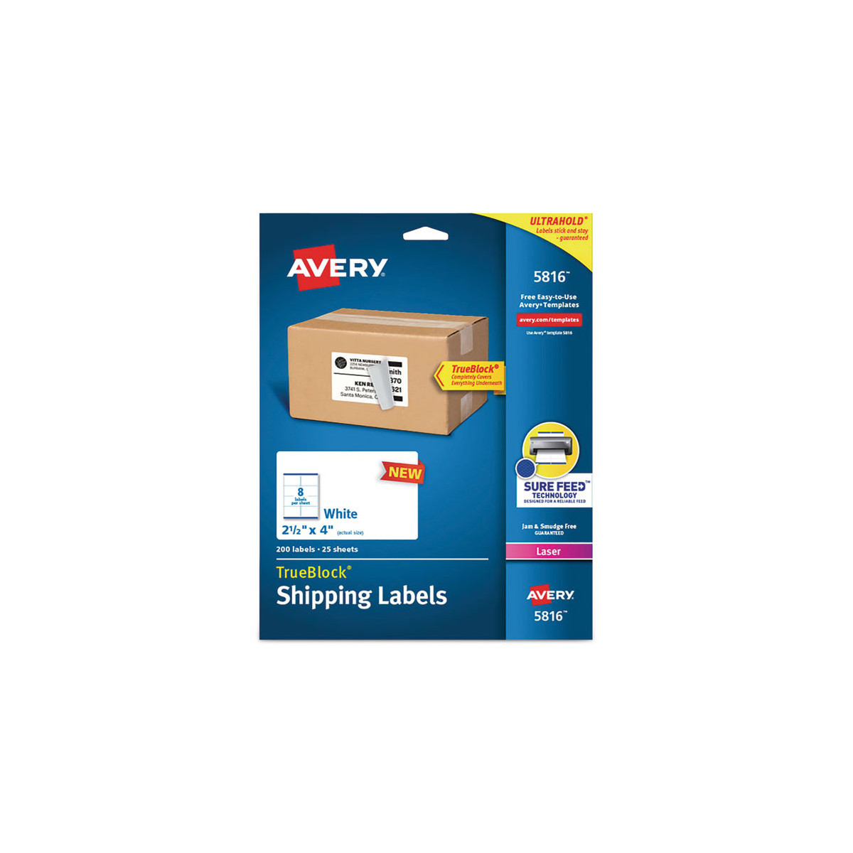 Shipping Labels with TrueBlock Technology, Laser Printers, 2.5 x 4, White, 8/Sheet, 25 Sheets/Pack