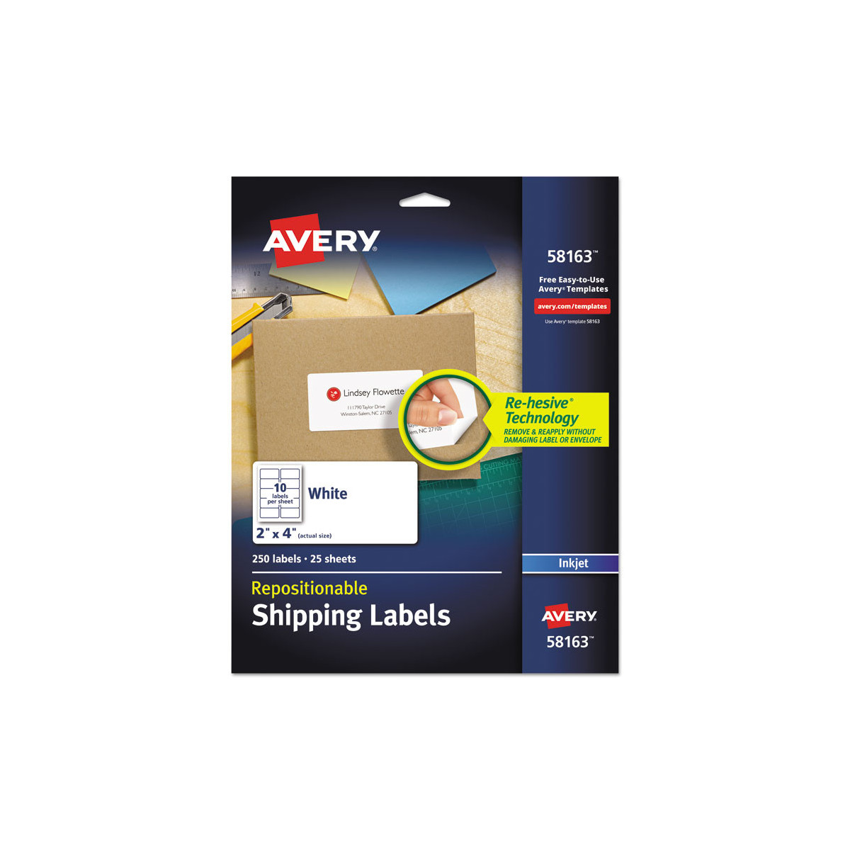 When you want your labels placed just right, count on these repositionable addressing and shipping labels to help you get the job done. It's easy to correct labels placed improperly, upside down or even with the wrong address. With Avery® Re-hesive™ technology, you can remove and reapply without damaging the label or envelope. But over time, the adhesive becomes permanent and is guaranteed not to fall off. Easy to customize with free templates and designs from Avery® Design & Print. It's that easy.