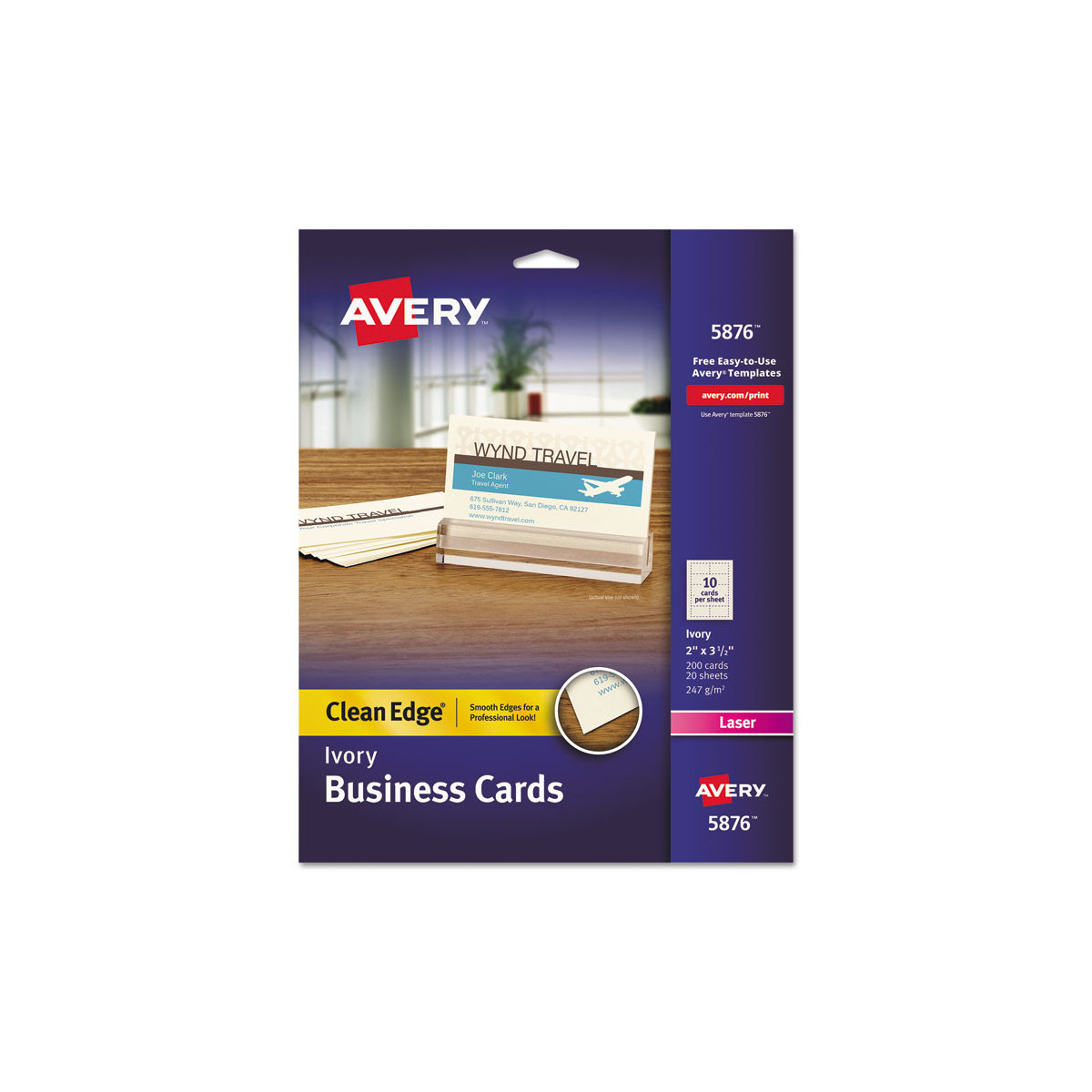 Clean Edge Business Cards, Laser, 2 x 3.5, Ivory, 10 Cards/Sheet, 20 Sheets/Pack