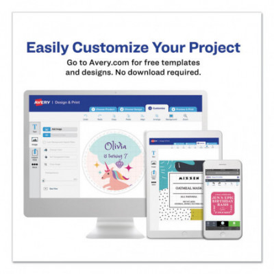 Customize labels with attention-getting images; make your most important messages stand out with high-visibility color labels. Ideal for announcements, priority messages, identification and more! Easy to customize with free templates from Avery® Design & Print. 8.5" x 11" sheets.