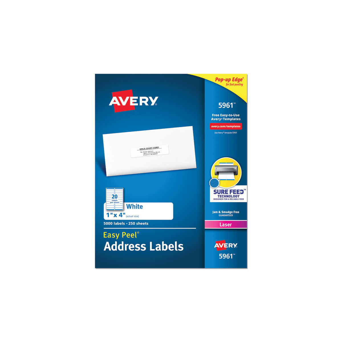 Create professional address labels quickly and easily. Perfect for high-volume mailing projects, labeling bottles, jars, food containers, product branding, event decorations, and more. Labels with Sure Feed® technology are designed to provide a reliable printer feed to help prevent misalignments and jams. The proprietary Easy Peel® feature makes applying the labels a breeze. Just bend the label sheet to expose the Pop-up Edge®, peel off the label and fold the sheet back to flat. Easy to customize with free designs and templates from Avery® Design & Print. 8.5" x 11" sheets for laser or inkjet printers.